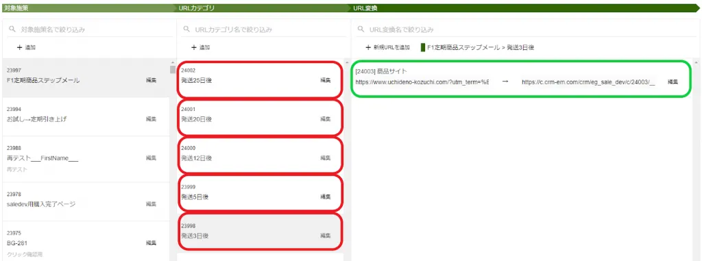 施策(単発メール・ステップメール・LINE配信)の際に本文に設置するURLを、